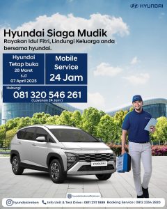 Hyundai Siaga Mudik: Layanan 24 Jam untuk Perjalanan Aman dan Nyaman Rayakan Idul Fitri dengan tenang bersama Hyundai! Untuk memastikan perjalanan mudik Anda tetap aman